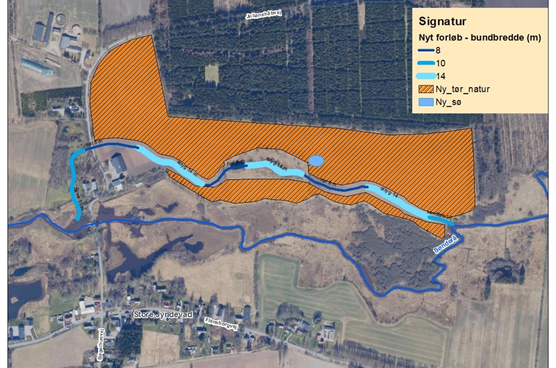 Via projektet etableres ca. 20 ha ny natur nord for det nye forløb af Sønderå.